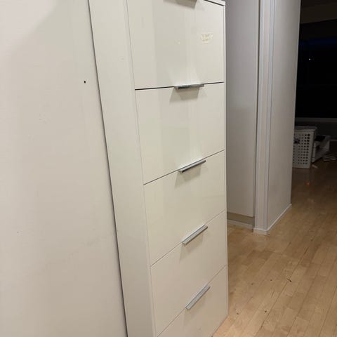 Hhvä, käytettu kunto. Ei kolhuja. Väri valkoinen. Mahtuu 3-4 kenkäparia kaappiin. Kevyt. Vain nouto