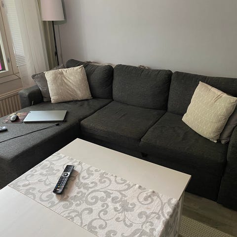 Luovun reppurikämpästäni ja sieltä jää tämä monipuolinen ja erittäin hyvässä kunnossa oleva tumman harmaa kangassohva myytäväksi. Vuodevaatteet menevät kätevästi divaanin sisälle ja sohvasta saa kätevästi levitettyä parisängyn kahdelle aikuiselle.