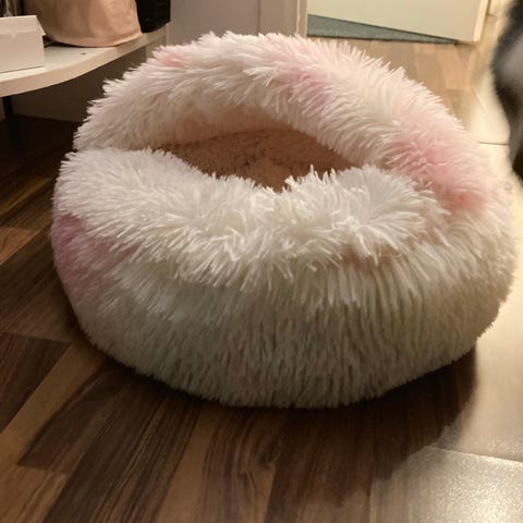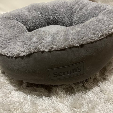 Harmaa pyöreä lemmikin Scruffs thermal peti, jonka halkaisija on 50 cm.
