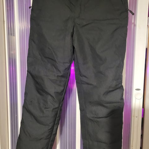 Laadukkaat Raiskin hiihtohousut koossa 34. Edessä soft shell -kangas ja takana pehmeämpi kosteutta siirtävä kangas. Lahkeiden sivuissa vetoketjut, joka helpottaa monojen laittoa. Henkseleiden kuminauhat hieman löystyneet käytössä, mutta henkselit saa halutessaan kokonaan irti housuista.