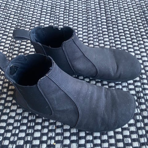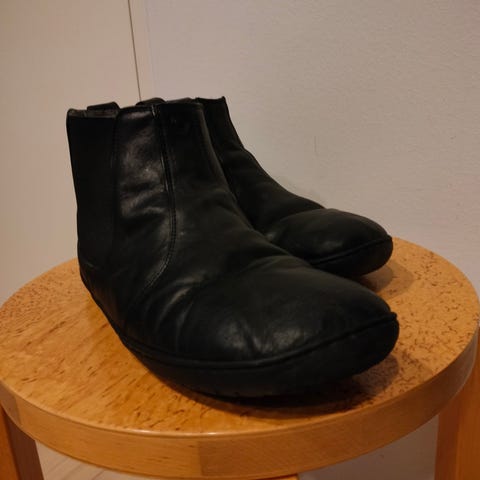 Mukishoesille tyypillisesti letkeät, kevyet pj-kengät. Mokkanahkaa, flanellivuori, pohja kumia.