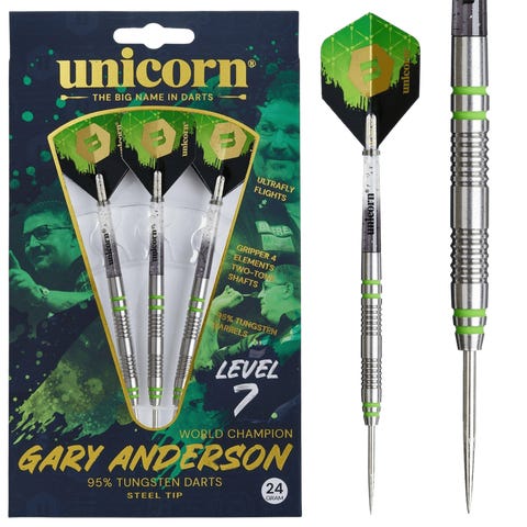 Teräksiset dartstikat, joiden paino on 20, 22 ja 24 grammaa. Suunniteltu tarjoamaan optimaalinen tarkkuuden ja kestävyyden tasapaino. Vaihdettavat sulat.