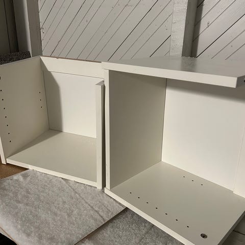 Annetaan kuvan Billy hylly ja korotusosa. Alaosa muokattu lattialistan mukaan (katso kuva). Nopea nouto Runeberginkadulta.
