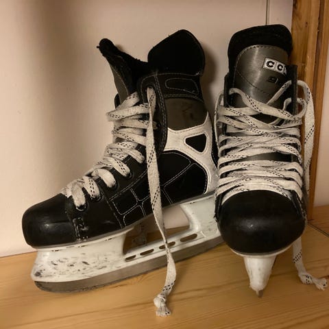 CCM Vector jääkiekkoluistimet, koko 39. Sisämitta 25cm. Väri harmaa-musta, valkoinen teräkotelo. Luistimet soveltuvat jääkiekkoon ja muuhun jäällä liikkumiseen. Nauhakiinnitys, vahvistettu kärki ja nilkkatuki. Terät metallia, runko synteettistä materiaalia. Käytön jälkiä. Ei ole teroitettu.