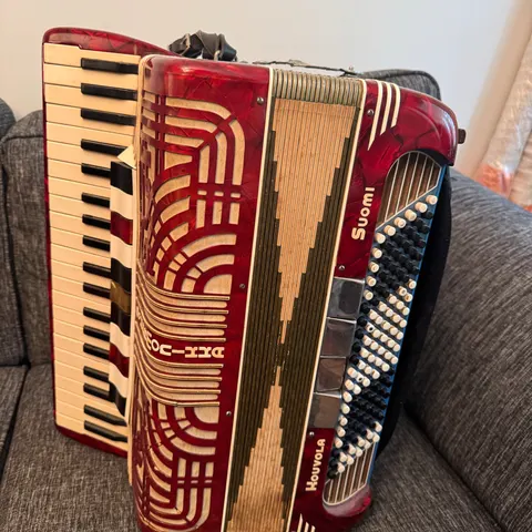 Myydään saksalainen 3-äänikertainen Weltmeister Stella pianoharmonikka 70-luvulta. Saamieni tietojen mukaan soitin olisi soittokunnossa, yhden koskettimen muovipinnote osin lähtenyt irti, mutta kyseinen painike toimii myös. Muutoin haitari on varsin siisti ikäisekseen. Itse en osaa soittaa, saa testata ennen ostoa paikan päällä, myydään siinä kunnossa kuin on myyntihetkellä, ei takuuta tai palautusoikeutta. 70-luku 70-luvun soitin soittimet pianohaitari pianoharmonikka piano pieno pienohaitari harmonikka pienoharmonikka tampere tre pianohaitari musta weltmaister veltmeister