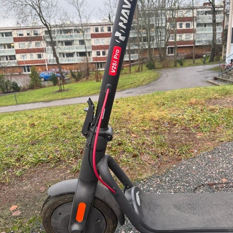 Kevyt ja kompakti tieliikennehyväksytty sähköpotkulauta. Turvallinen jarrujärjestelmä edessä ja takana. Puhkeamattomat ja huoltovapaat renkaat. Kaksoisjousitettu etupyörä.
