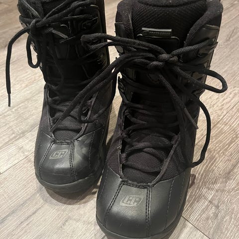 Crazy Creek lumilautakengät, koko EU 38 (US 6, UK 5, JPN 24.5). Väritys harmaa-valkoinen mustilla yksityiskohdilla. Nauhakiinnitys edessä. Pohjassa karkea kuviointi, joka on suunniteltu tarjoamaan pitoa lumella ja jäällä.
