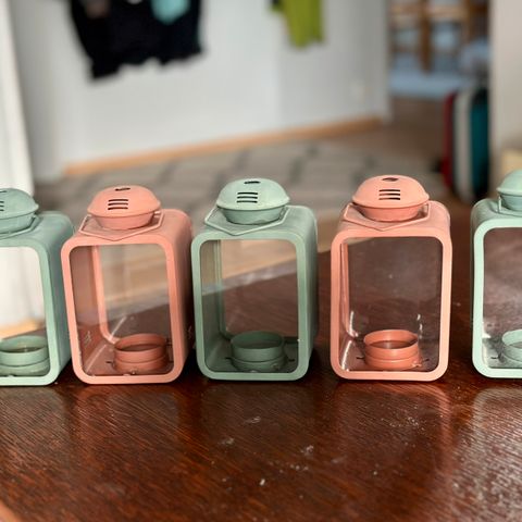 Myydään siistikuntoiset ja hauskat koriste-myrskylyhdyt. (Aiemmin ehkä sisältäneet jotain juomaa)