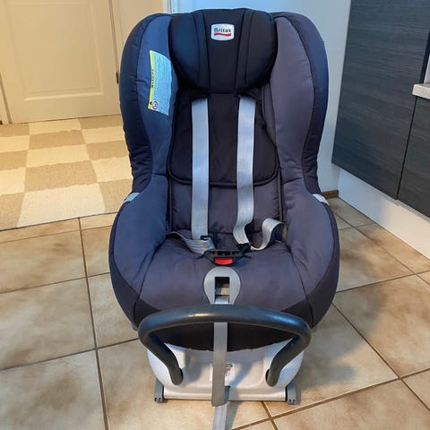 Britax max fix 2 turvaistuin 0–18 kg lapsille. Istuimessa on viisipistevaljaat ja pehmustetut olkavyöt. Turvaistuin kiinnitetään autoon selkä menosuuntaan käyttäen tukijalkaa ja isofixiä Päällinen on tummansininen kangas.