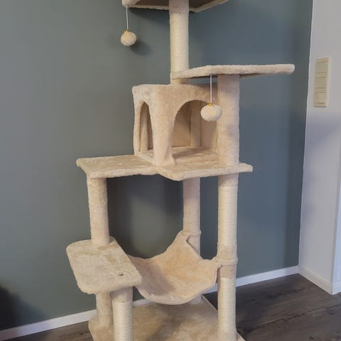2tasoinen raapimispuu/ teline ja portaat,silsaköydet uusittu,kaupan päälle kissapeti !