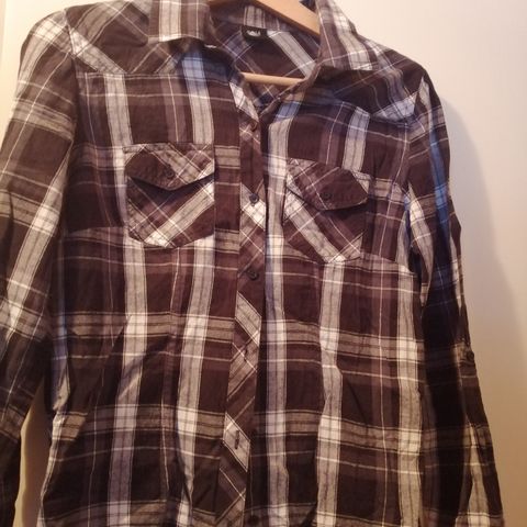 Naisten S-kokoinen, beige-harmaa ruutupaita.