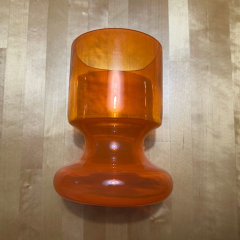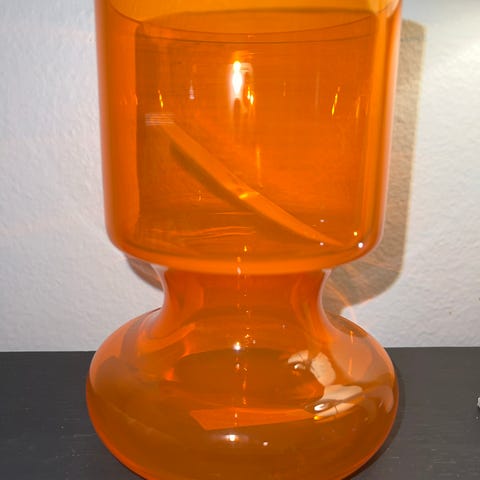 Oranssi vain koristeena ollut maljakko. 15,5 cm korkea. Täysin uudenveroinen.