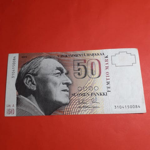 50 markan seteli vuodelta 1986 5 €