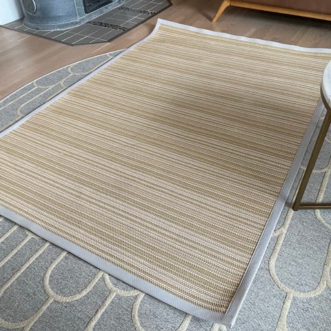 Kajo, ryhdikäs tummanharmaa paperinarumatto vaaleilla raidoilla. Hylkii likaa ja helppohoitoinen. Sopii hyvin erilaisiin sisustuksiin, itse käyttänyt mm. keittiön pöydän alla. Tuolien alta pieniä jälkiä