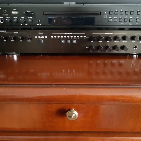 Siitä läjä karaokevehkeitä. Löytyy vielä pari langallista mikkiä ja läjä muita piuhoja. Koko satsi kerralla pois. Kuolinpesä myy.