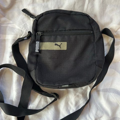 Käytössä ollut luonnonvalkoinen/ musta olkalaukku. Sisältä kuin uusi, alakulmassa ulkona kulumaa - patinaa 😊.