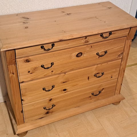 Täyspuuta. Kolme isoa vetolaatikkoa.
