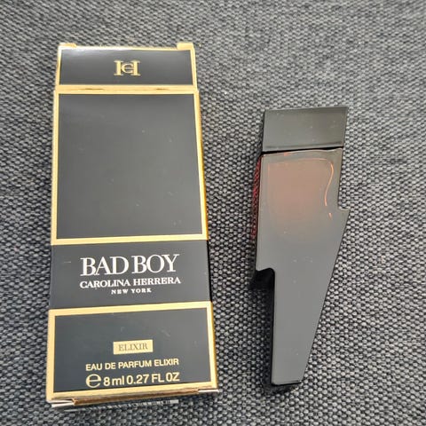 Carolina Herrera Bad Boy Elixir eau de parfum miehille, tilavuus 100 ml. Tuoksu on pakattu alkuperäiseen mustaan laatikkoon. Sopii käytettäväksi päivittäin tai juhlatilaisuuksissa.
