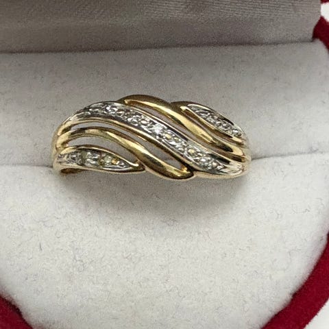 Timanttisormus 585, paino 1,5 g, halkaisija 17, kaiverrettu. Ei sertifikaattia.