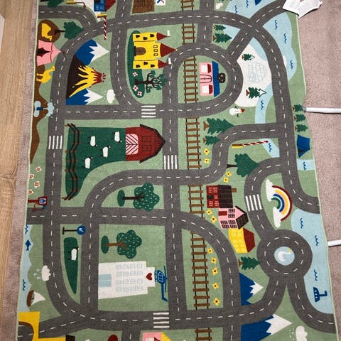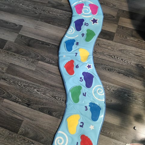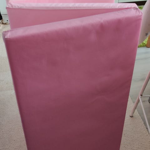 Pehmuste sisällä on kunnossa mutta muovipäällysteessä on kulumaa, kts. kuvat. Kuluma ei toisaalta vaikuta käyttöön, jos pitää kuluneen puolen lattiaa päin.
