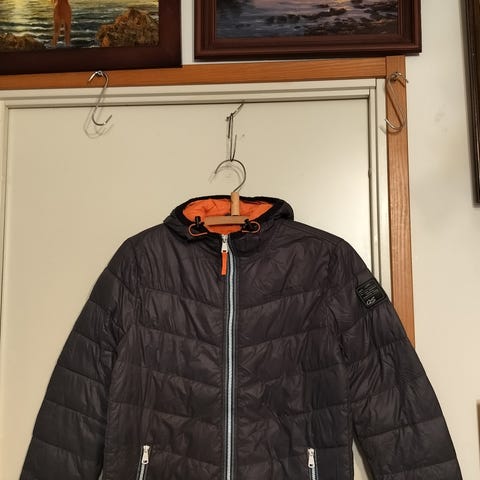 Kaksipuolinen takki toisella puolella sininen, toisella puolella punainen, voi käyttää nuurin päin
