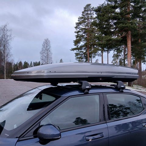 Vuokrataan suksiboksi ja polestar 2 taakkatelineet.