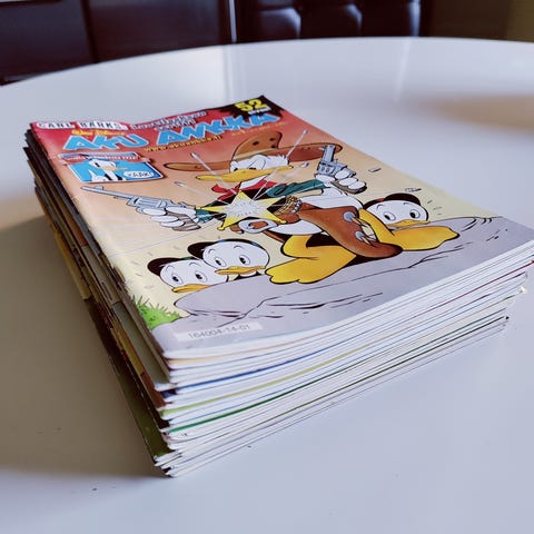 Aku Ankka sarjakuvia. Nouto tai postitus, jolloin ostajalle postikulu.