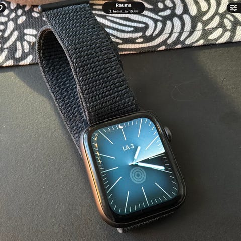 Myydään hyvässä kunnossa oleva Apple Watch Series 5 45mm GPS alumiinisella kellotaululla. Mukaan tuleva ranneke on pink sand urheiluranneke. Laitteessa on lieviä kosmeettisia jälkiä ja toiminnaltaan moitteeton. Kauppaan sisältyy ranneke sekä laturi.