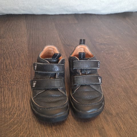Lasten Kickers paljasjalkakengät, koossa 22. Soveltuu leudommille talvikeleille/viileämpään välikauteen. Kengissä villavuori ja pinta on nahkaa.