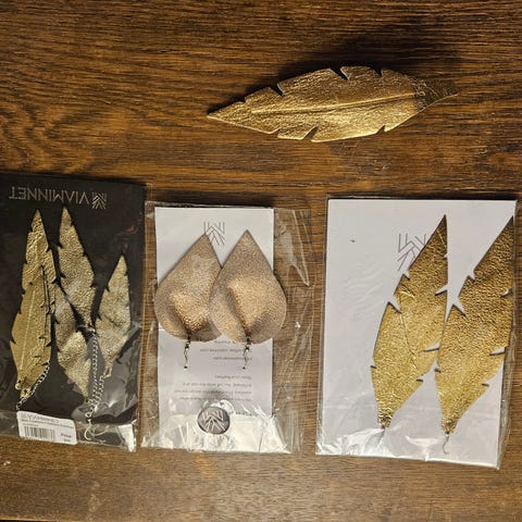 Käyttämättömät, kullan väriset näyttävät korvakorut.