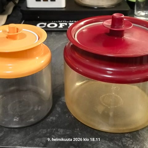 Tupperware Concorde purkki. Esim kahvipurkkina hyvä.