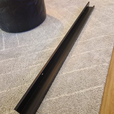 SULDRUP Näytön jalusta musta (jysk). Aika hyvässä kunnossa, pari pientä naarmuja löytyy päältä. Viilu ja teräs. L30 x P50 x K15 cm