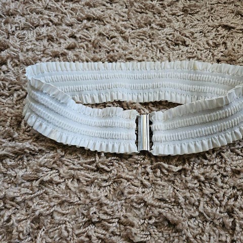 Vanha ruskea leveä lantiovyö. Kokopituus 116 cm, mahtuu välille 95-107 cm. Iso pyöreä pronssinvärinen solki, halkaisija 9 cm, kiinnitys tapilla. Vyön ylä-ja alareunoissa paljon pieniä pyöreitä niittejä. Koko vyö on reikäkoristeinen. Ehjä ja siisti. Postitus tai nouto.