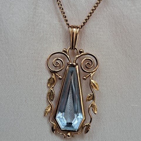 Myydään erittäin kaunis vintage-koru. Ketjun pituus 52 cm. Leimojen mukaan riipus on valmistettu vuonna 1963.