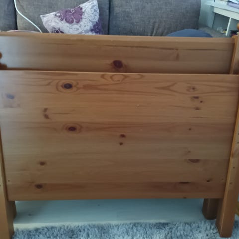 Valkoinen juniorisänky, jossa laidat päädyissä ja toisella sivulla. Sängyn alla on vetolaatikko säilytystilaa varten. Pohja koostuu useasta levystä. Sopii 90x200 kokoiseen patjaan.