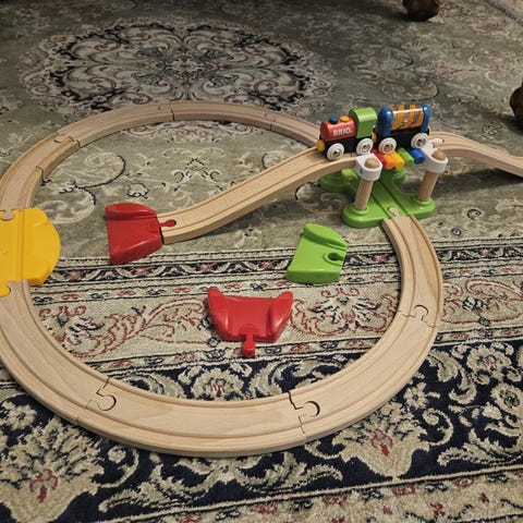 Hammasratas lelusetti, brion rataslauta, jossa toisella puolella vain värikkäät nupit ja toisella puolella myös kuvot. Rattaita voi kasata haluamallaan tavalla ensin ihan miten sattuu, sitten värit saman värisiin nuppeihin ja lopulta kuviot oikeisiin kuvioihin.