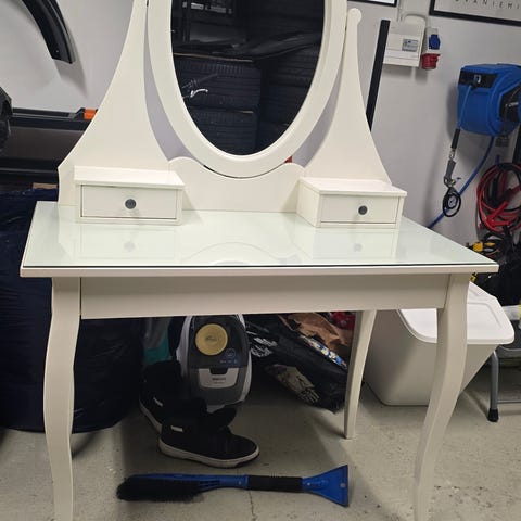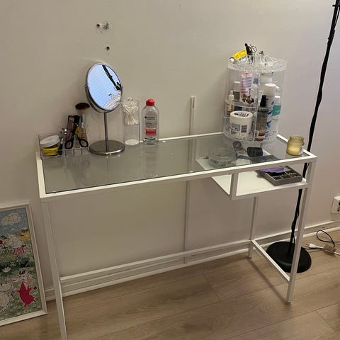 Myydään valkoinen Ikean meikkipöytä. Ei näkyviä käytön jälkiä. Peilin saa halutessaan mukaan.