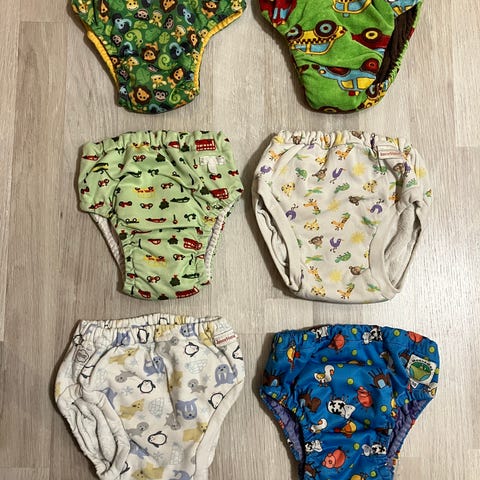 Huomioi myös, että näissä ei ole ollenkaan kosteudenpitävää PUL-kangasta, eli pitävät pienet lirut. Sisävuori froteeta ja ulkopinta kuviollista puuvillaa.