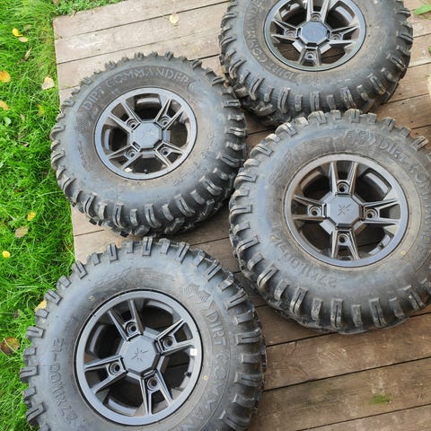 Ostetaan Polaris Spm 570 rengassarja vanteilla. Hakusessa hyväkuntoiset tai uudet nappularenkaat Duro tai Moose Rigid tyyppiset mieluiten Moose tai ITP vanteilla. Saa tarjota myös samassa setissä 2 tuumaisia spacereita 4kpl Pollen pulttijaolla (4x156). Sekä kartiomuttereita. Älä tarjoa alkuperäisiä renkaita.