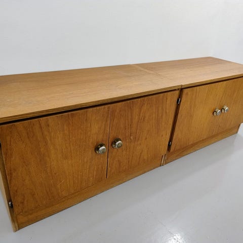 Valkoinen, kirjahylly. Hyllyt hieman taipuneet kirjojen painosta, muuten ihan hyvä kuntoinen. Valaisimet kaapin päälle.