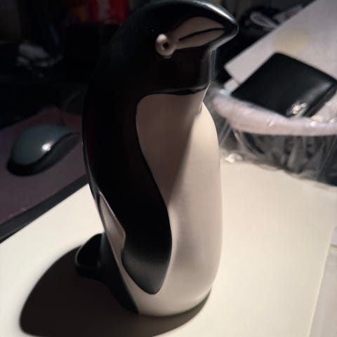 Arabia pingviinit. Olleet koristeena. Toisessa pingviinissä näkyy pienesti valkoista alta