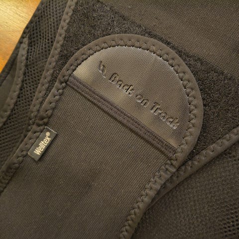 Musta selkätuki tarrakiinnityksellä. Leveä malli, joka kiertyy vyötärön ympäri ja kiristetään etupuolelta läpän avulla. Sopii käytettäväksi selän tukemiseen arjessa tai kevyessä liikunnassa. Materiaali vaikuttaa joustavalta ja pehmeältä.menee enintään 100cm vyätärölle ja sitä pienemmille