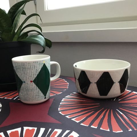 Hyvässä kunnossa oleva lasten setti Marimekko karkuteillä. Lautasia löytyy enemmänkin, tämä ollut oma kokonaisuus.