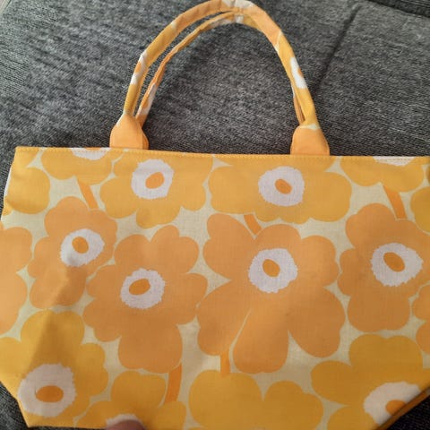Kirkkaan keltainen Marimekon läppärisuoja, väri ei ihan todennu oikein kuvissa. Muuten moitteettomassa kunnossa ja vetoketju toimii hyvin, mutta kotelossa on pari tahraa ja muita pieniä epäkohtia joita tullut käytössä. Eivät kuitenkaan haittaa käyttöä ollenkaan, kosmeettisia haittoja.