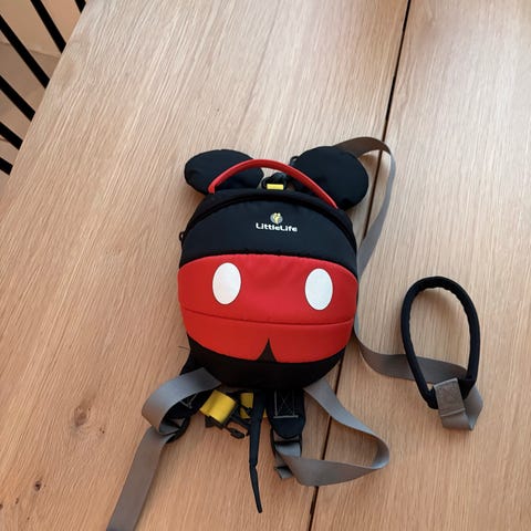 Pehmoreppu turvahihnalla. On tosi kätevää vaikka jos taapero ei tykkää kävellä kädestä pitäen. Taskuun mahtuis jotain pientä, esim. pikkulelu, smoothie tai nenäliinat.