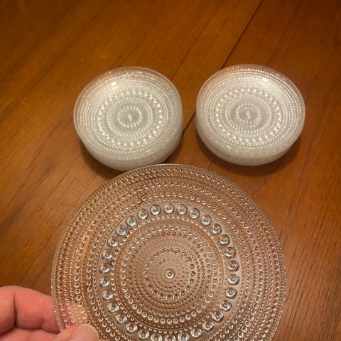 4 kpl Kastehelmi sarjan (Iittala/Nuutajärvi, Oiva Toikka) pikkulautasta.