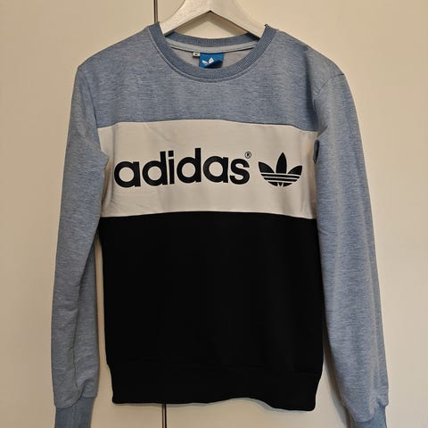Suomalaisen, jo toimintansa lopettaneen Klo-Design-merkin laadukas pitkähelmainen college. Materiaali on laskeutuvaa, pehmeää ja painavahkoa neulosta. Edessä taskut molemmilla puolilla. Väri on kaunis meleerattu tummansininen. Käytetty ja pesty melko paljon, ja pesuista tullut hieman nyppyä etenkin resoreihin, sekä väri paikoin elänyt, mutta ei mielestäni häiritsevästi. Peruscollegea laadukkaampi paita!