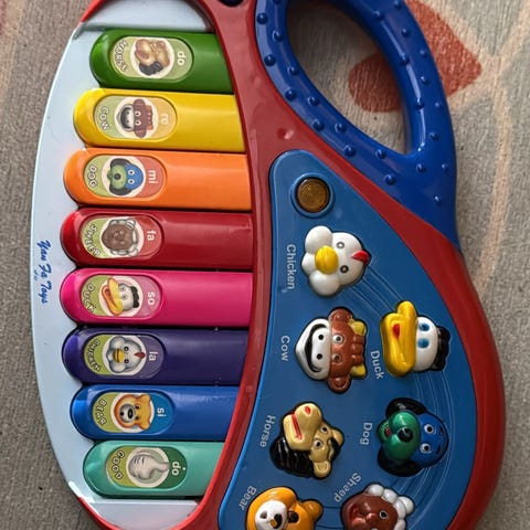 Pehmeä piano, jossa myös peili. Peili on naarmuuntunut, mutta näkee hyvin vauva itsensä siitä.