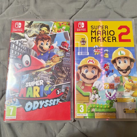 Nintendo Switch Super Mario Odyssey ja Super Mario Maker 2 pelit