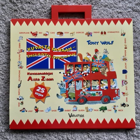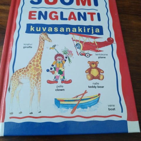 Suomi–englanti kuvasanakirja lapsille. Kirjassa esitellään suomen- ja englanninkielisiä sanoja värikkäiden kuvien avulla. Sivut on jaettu aihealueisiin, kuten esimerkiksi makuuhuone, ja jokaisessa kuvassa on selkeästi merkitty sana sekä suomeksi että englanniksi. Sopii erityisesti lasten sanavaraston laajentamiseen ja kielten alkeiden oppimiseen kuvitettujen esimerkkien avulla.